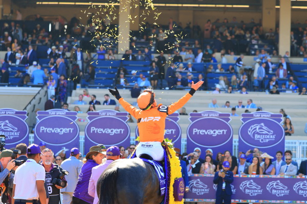 5レース・BREEDERS' CUP TURF SPRINT(G1 芝1000m)3歳以上の芝1000mの短距離戦、日本からはインビンシブルパパインビンシブルパパ(牡4歳 美浦・伊藤 大士)繰り上げ出走となったピューロマジック(牝4歳 栗東・安田 翔伍)が出走。