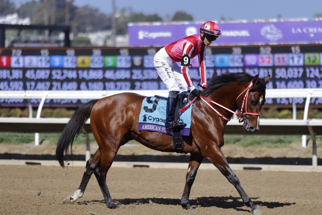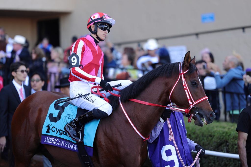 BCスプリントの本馬場入場のアメリカンステージAmerican Stageです。鞍上は坂井瑠星Ryusei Sakai騎手です。