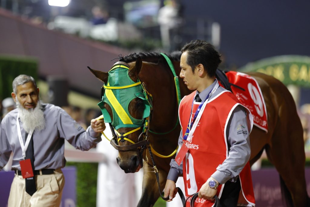 ドバイワールドカップのパドックでのウシュバテソーロUshba Tesoroです。