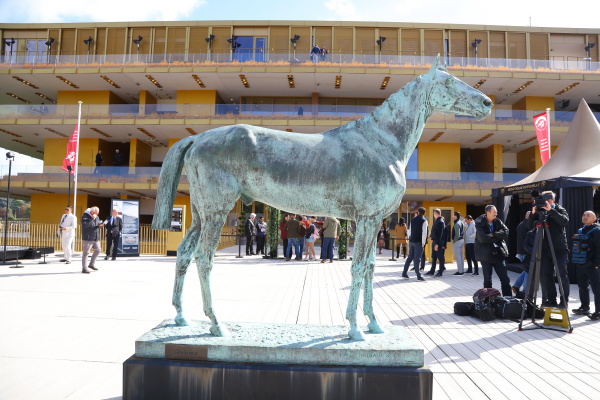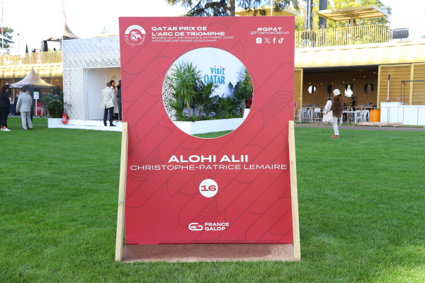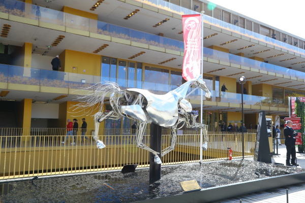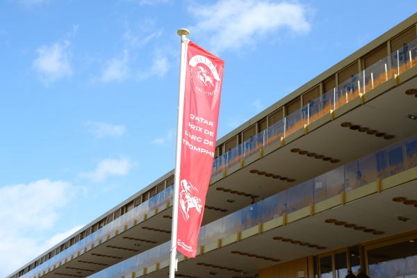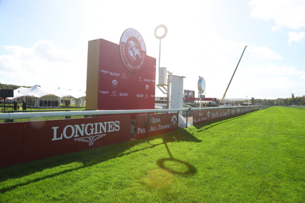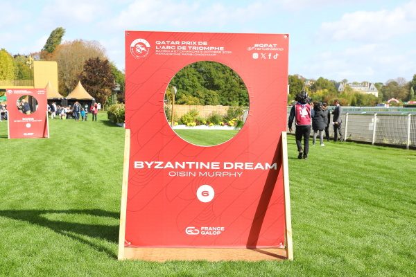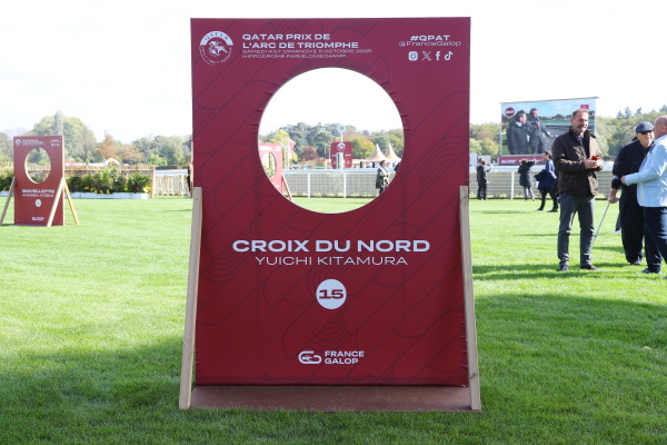 凱旋門賞出走馬の顔出しパネルのようなものもの置かれていた。
