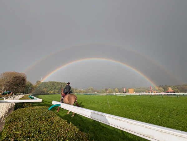 7レースが終わると上空が黒い雲に覆われたかと思うと、いきなりにわか雨に降られた。