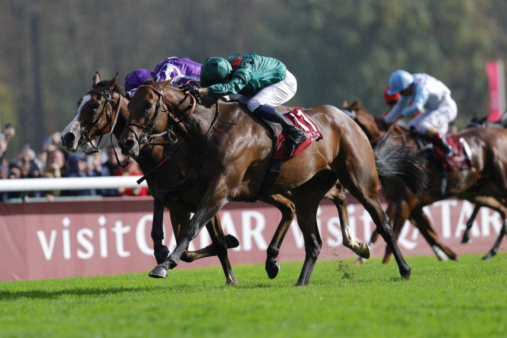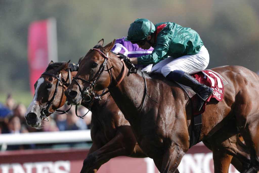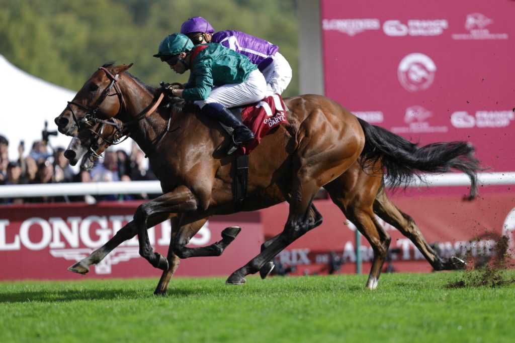 5Rに2400m芝の凱旋門賞Prix de l'Arc de Triomphe (Group 1) がエストレンジEstrange取消しの17頭立てで行われました。スタート後にホタツェルHotazhellが前に出るとその外にクロワデュノールCroix du Nord、ロスアンゼルスLos Angelesが付け、4番手の内にミニーホークMinnie Hauk、外にキジサナQuisisana、後ろにアヴァンチュールAventureが続き、中団に内からダリズDaryz、アロヒアリイAlohi Alii、カルパナKalpana、後ろにジアヴェロットGiavellotto、ソジーSosie、ホワイトバーチWhite Birch、クアリフィカーCualificar、後方からスタートで遅れたビサンチンドリームByzantine Dream、ルファールLeffard、ゲゾラGezora、最後方からアローイーグルArrow Eagleという隊列になりました。3コーナーでクロワデュノールが単独で先頭に立つとその真後ろにミニーホークが付け、最内を通ってジアヴェロットとビザンチンドリームが押し上げて直線へ。先頭のクロワデュノールを残り400mで外からミニーホークが交わして先頭に立つと一気に突き放し、その外に持ち出したダリズがミニーホークに迫るとその後ろが離される一方となり、残り200mでダリズがミニーホークに並びかけるとゴール前で僅かに競り勝って優勝しました。勝ちタイムは2:29.17で鞍上はミカエル・バルザローナMickael Barzalona騎手。アタマ差の2着にミニーホーク、残り300mでも中団馬群の中だったソジーがゴール前で伸びて5-1/2馬身差の3着に入り、オープンストレッチで競り合ったジアヴェロットがアタマ差の4着、その内のビサンチンドリームがクビ差の5着に入り、カルパナ7着、アヴァンチュール11着、クロワデュノール14着、アロヒアリイ16着でした。