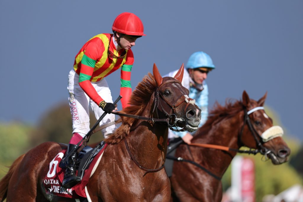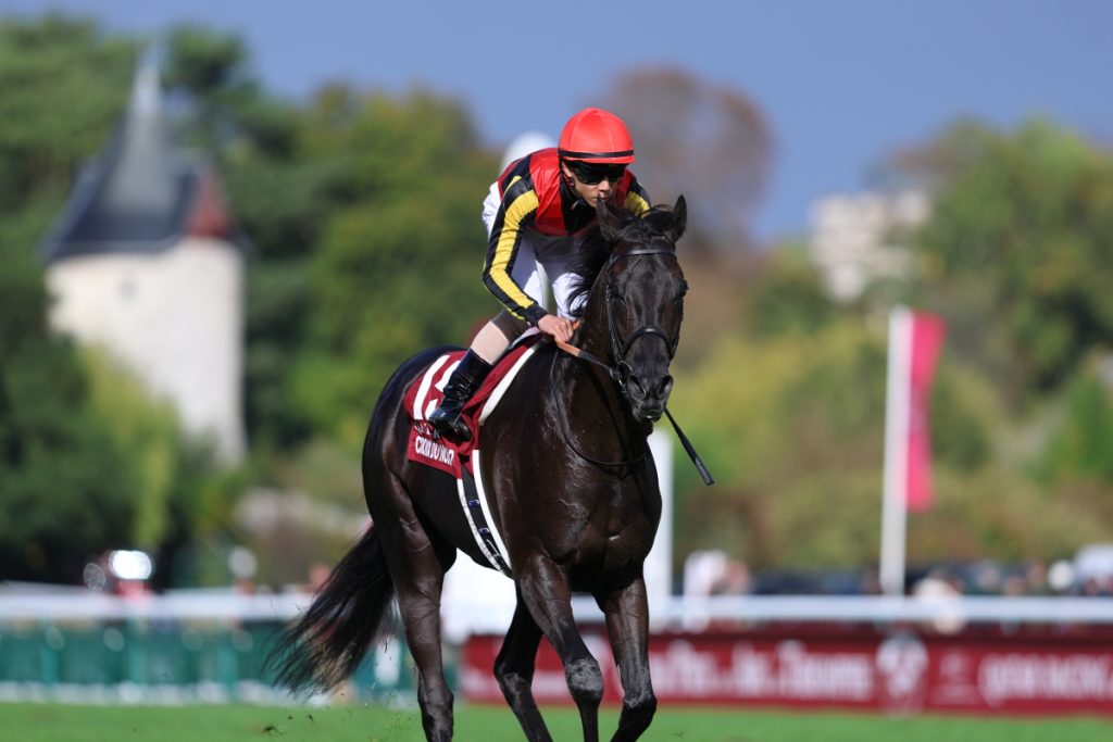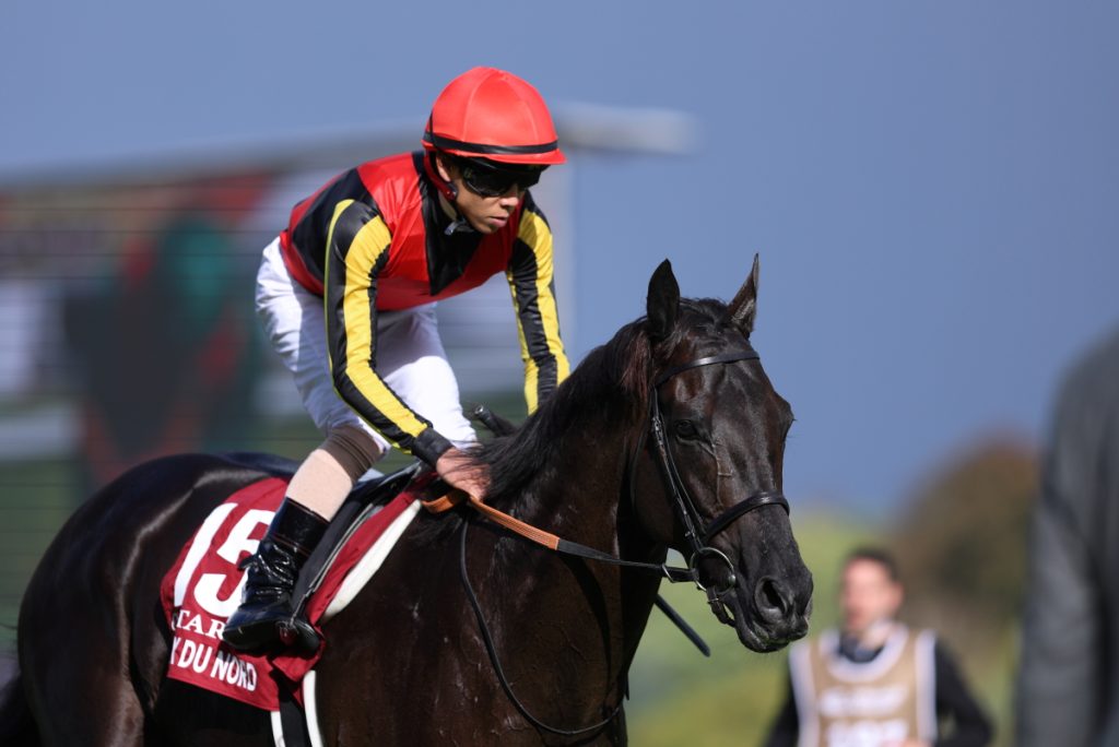 凱旋門賞のレース後のクロワデュノールCroix du Nordです。大外枠から好スタートを切ると2番手に付けたものの、3コーナーで押し出されて先頭に立つと直線半ばで一杯となり14着でした。鞍上は北村友一Yuichi Kitamura騎手です。