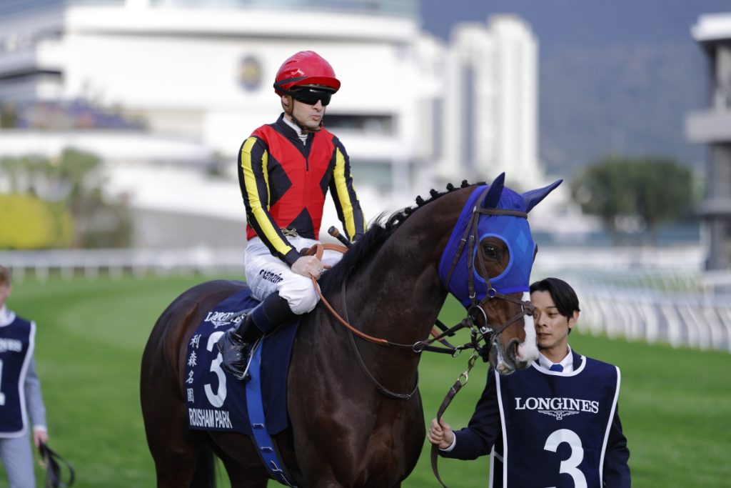 香港カップの本馬場入場のローシャムパークRousham Parkです。鞍上はクリストフ・ルメールChristophe Lemaire騎手です。