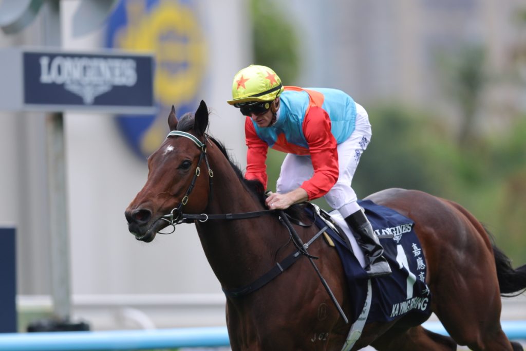 5Rに1200m芝の香港スプリントHong Kong Sprint (Group 1) が行われました。最内枠からカーインライジングKa Ying Risingがハナに立ち、スタートダッシュは付かなかったものの押してウインカーネリアンWin Carnelianが2番手の外に付け、その後ろにファストネットワークFast Network、ヴンダバーWunderbar、ビューティーウェイヴスBeauty Wavesが続き、中団からトモダチココロエTomodachi Kokoroe、内にサトノレーヴSatono Reve、外にディヴァーノDivano、後ろにヘリオスエクスプレスHelios Express、後方にレイジンブリザードRaging Blizzard、ラッキースワイネスLucky Sweynesse、ラッキーウィズユーLucky with You、スタートで鎧が外れたカーデムKhaademが離れた最後方という隊列となりました。3コーナーでディヴァーノが失速して下がり、4コーナーでカーインライジングが持ったまま引き離して直線へ。カーインライジングがスパートすると一気に差を広げ、ウインカーネリアンは一杯となり内からファストネットワークが単独2番手に上がり、外からもレイジングブリザード、ヘリオスエクスプレス、ラッキースワイネスが伸びを見せますが、残り100mでカーインライジングが5馬身差を付けるとそこから流して優勝しました。勝ちタイムは1:07.70で鞍上はザカリー・パートンZac Purton騎手、ゴール前で競り合いからレイジングブリザードが3-3/4馬身差の2着に上がり、3/4馬身差の3着にファストネットワーク、短頭差の4着にラッキースワイネス、クビ差の5着にヘリオスエクスプレス、サトノレーヴは直線で最内を突いたものの伸びはなく9着、ウインカーネリアンは11着でした。