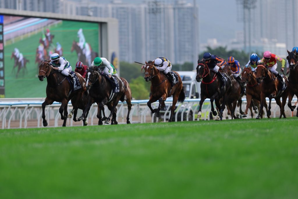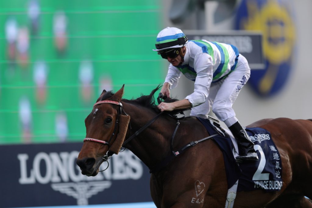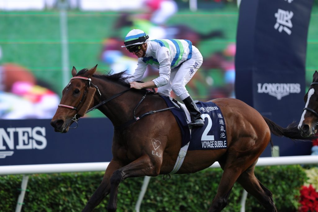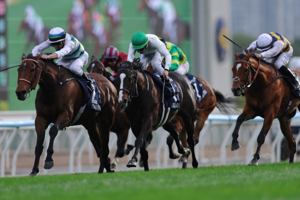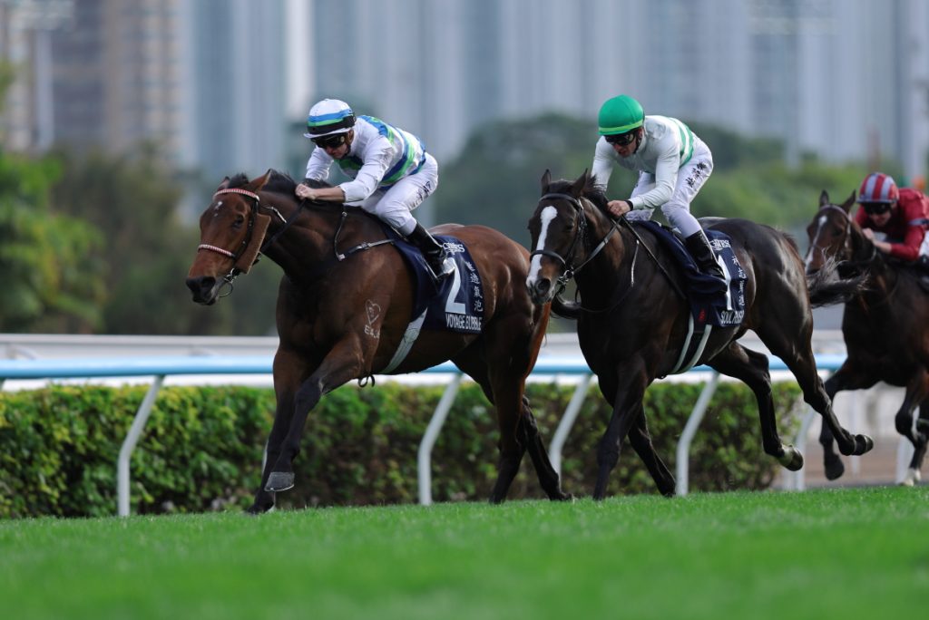 7Rに1600m芝の香港マイルHong Kong Mile (Group 1) が行われました。プレイフォーマーPray for Mirがハナに立つと2馬身のリードを取り、ドックランズDocklandsが2番手、ヴォイッジバブルが3番手の外に付け、内にコパートナープランスCopartner Prance、後ろにマイウィシュMy Wish、レッドライオンRed Lion、外にソウルラッシュSoul Rush、内にサンライトパワーSunlight Powerと一団で続き、中団にビューティージョイBeauty Joy、ギャラクシーパッチGalaxy Patch、エンブロイダリーEmbroidery、後方からザライオンインウィンターThe Lion in Winter、ボーバティエBeauvatier、最後方からパッチオブテタPatch of Thetaという隊列になりました。3コーナーでソウルラッシュは3番手まで上がり、エンブロイダリーも中団まで押し上げて直線へ。残り300mで逃げるプレイフォーマーを外からヴォイッジバブルが交わし、その外からソウルラッシュが並びかけると残り200mで先頭に立ちますが、そこからヴォイッジバブルが再び差し返して残り50mで内から抜けて優勝しました。勝ちタイムは1:33.47で鞍上はザカリー・パートンZac Purton騎手。1/2馬身差の2着にソウルラッシュ、ソウルラッシュの後ろを通ったレッドライオンが1-3/4馬身差の3着、その内を伸びたドックランズがクビ差の4着、後方から直線で大外を伸びたギャラクシーパッチがクビ差の5着に入り、エンブロイダリーは直線を向いて伸びはなく11着でした。