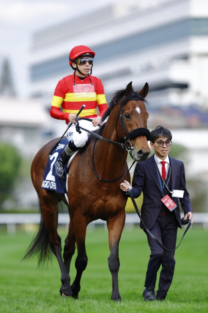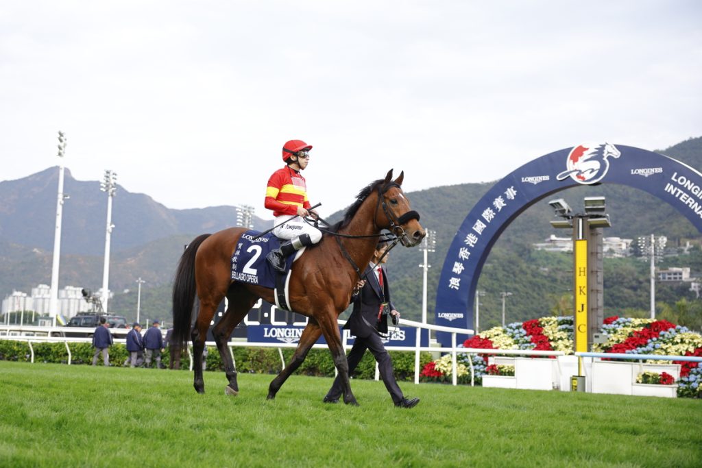 香港カップのレース後のベラジオオペラBellagio Operaです。ロマンチックウォリアーの内4番手でレースを進め、4コーナーで後方2番手に下がったものの、直線で外に出して伸びを見せてロマンチックウォリアーに1-3/4馬身差の2着でした。鞍上は横山和生Kazuo Yokoyama騎手です。
