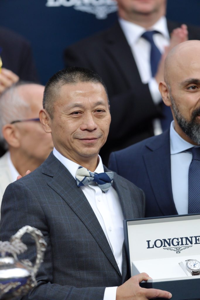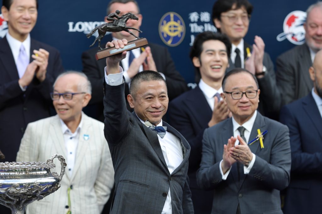 香港カップの表彰式でのチャップシン・シャムChap-shing Shum調教師です。