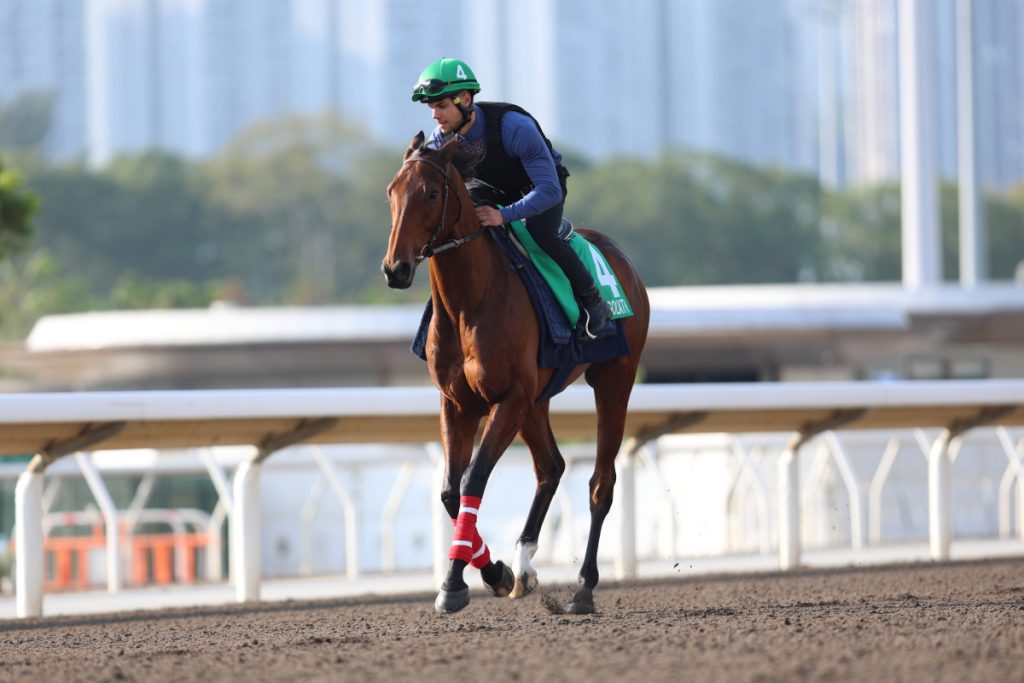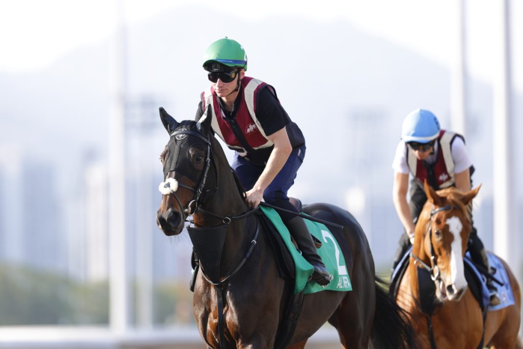 12日朝の調教中のアルリファーAl Riffaです。愛ジョセフ・オブライエンJoseph O'Brien師の管理する5歳牡馬で通算成績は16戦5勝、香港ヴァーズに出走します。22年6月にカラCurragh競馬場でのデビュー戦は2着、2戦目で初勝利を挙げると続くヴィンセントオブライエンナショナルSVincent O'Brien National Stakes (Group 1) も優勝しました。23年の3歳時は2戦し勝利はなく休養します。昨年4月のガネー賞Prix Ganay (Group 1) でアヤザークHaya Zark...